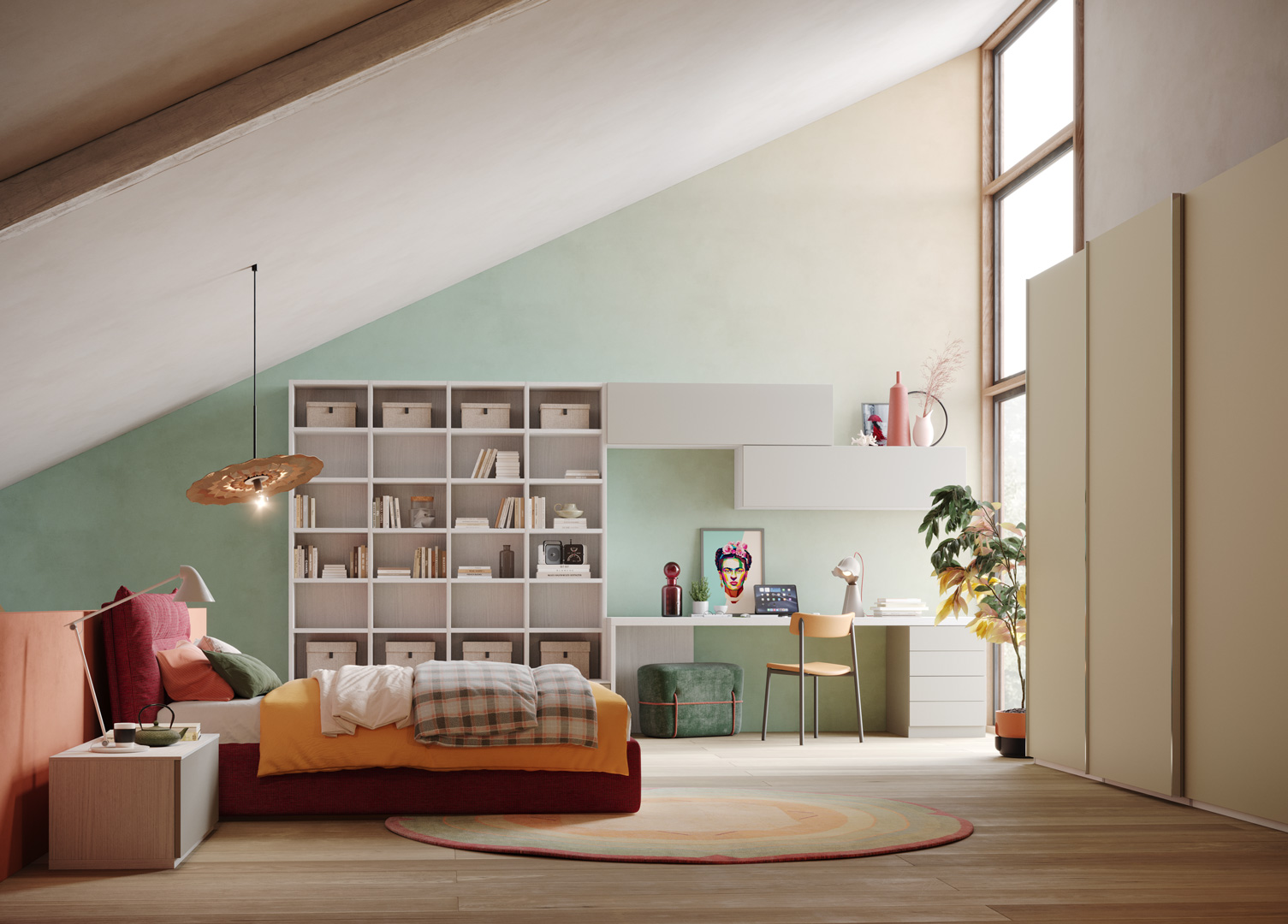 Una cameretta moderna non è solo bella da vedere, ma anche funzionale. Scrivanie con librerie integrate, armadi con ante scorrevoli e scaffali modulari permettono di ottimizzare gli spazi e mantenere tutto in ordine, anche nei momenti più caotici.